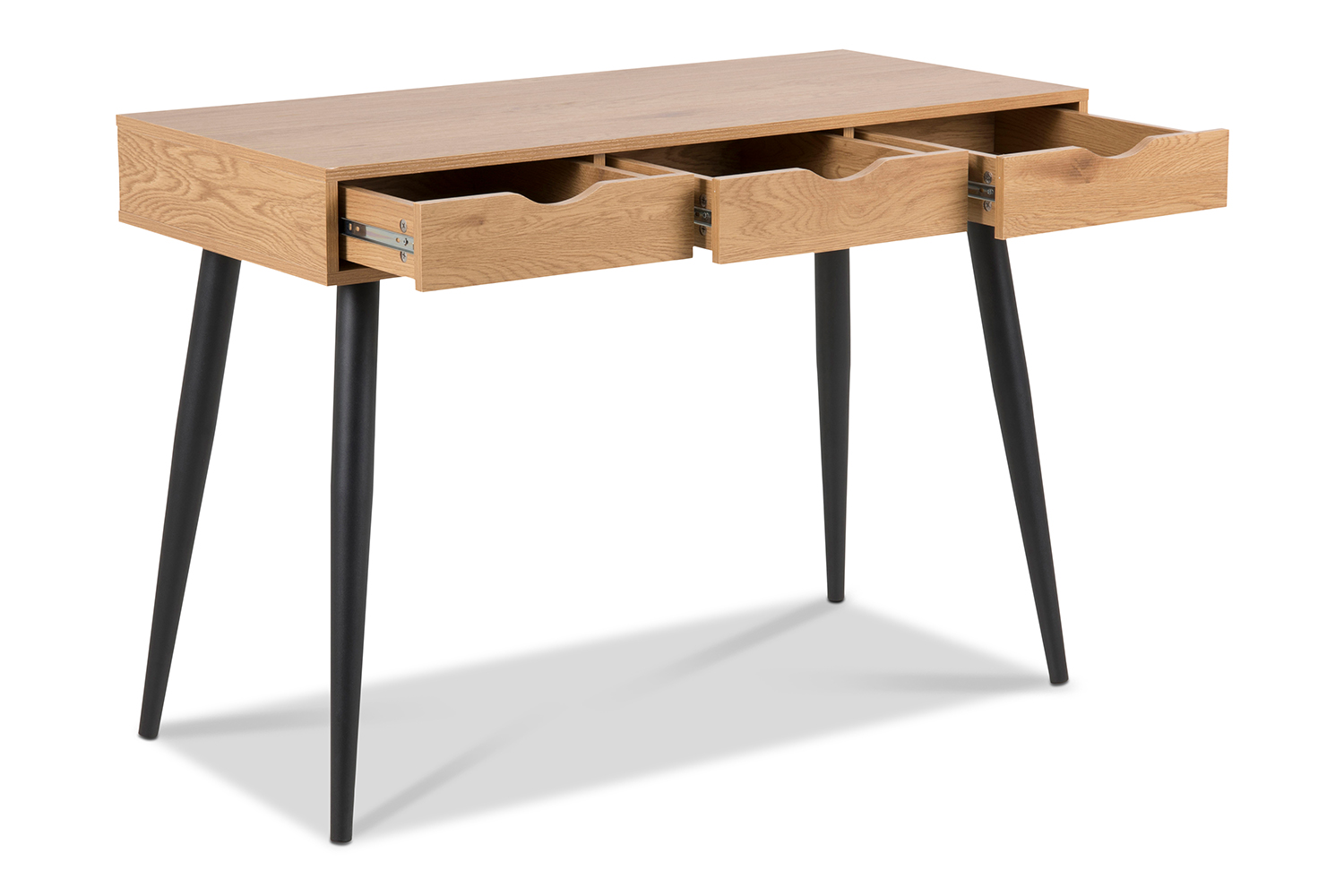 This table is perfect for a compact home office or when creating a bedroom study space, with three concealed drawers to organise stationery and eliminate clutter. A spacious surface provides ample room for a laptop, lamp and everything you need for a productive session!