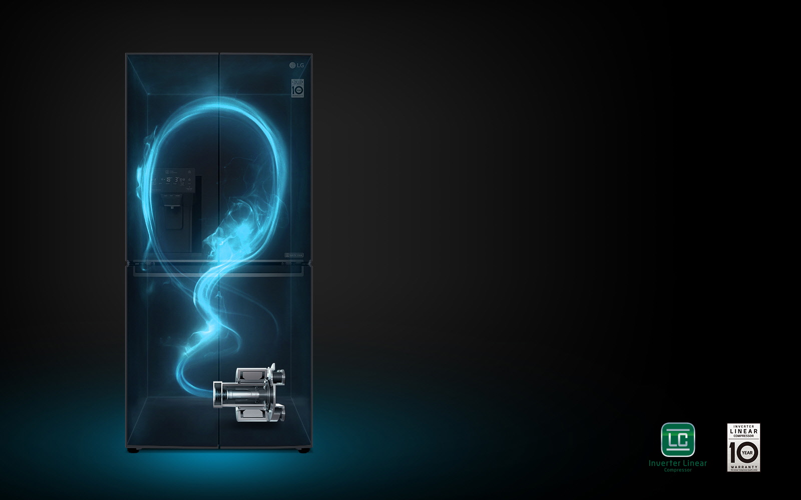 LG Inverter Linear Compressor has less noise than conventional compressors thanks to LG’s advanced technology. It also saves more energy and provides higher reliability and greater durability with 10 year parts warranty on the compressor.