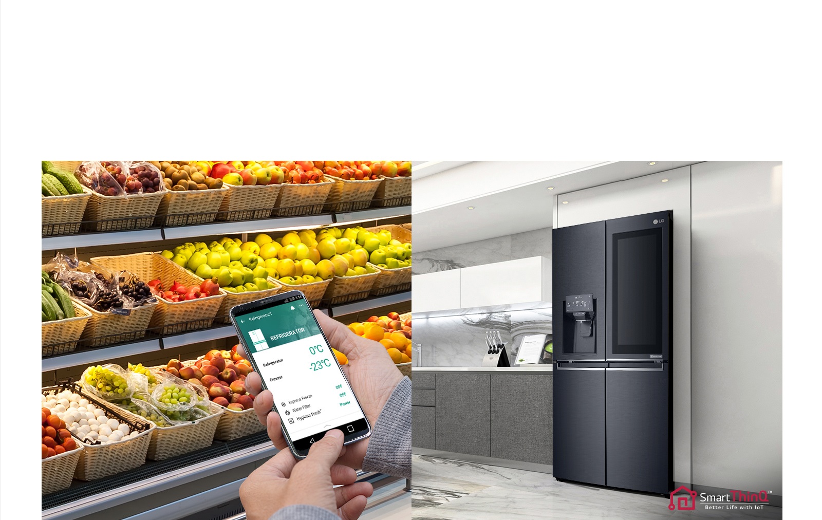 With a compatible smartphone and LG SmartThinQ app, you can remotely adjust temperature settings so your fridge is ready to accommodate a large shopping spree.
