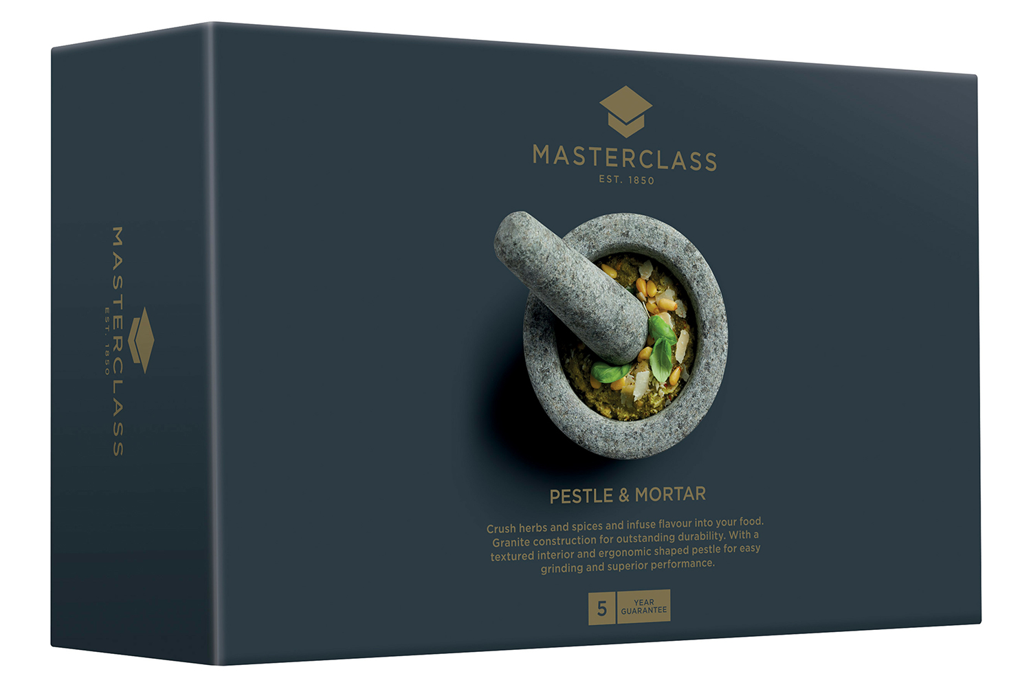 The stylish MasterClass granite mortar and pestle with textured mortar interior and comfort shaped pestle is ideal for crushing a variety of herbs and spices to infuse flavour into food.