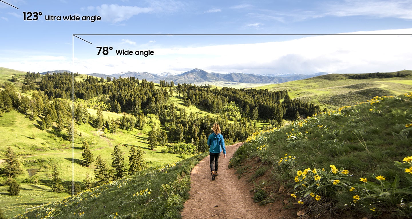 Galaxy A50 Triple camera consists of an Ultra Wide Camera with a 123-degree field of vision like the human eye, a 25MP (F1.7) camera for bright, clear photos all day, and a 5MP Depth Camera for adjusting the depth of field.