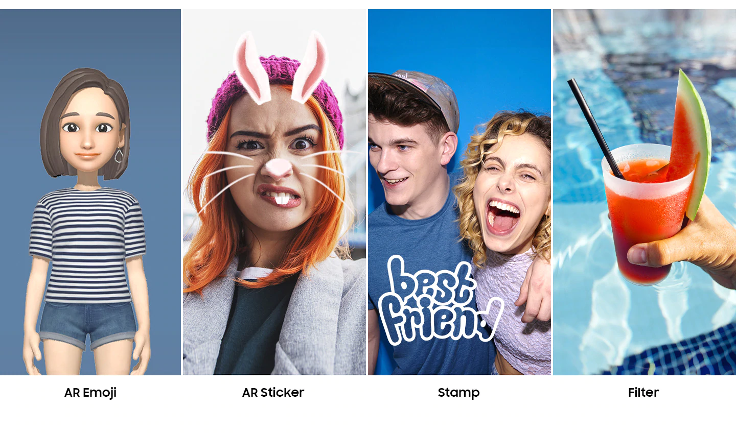 Now you have even more ways to express yourself. Make and personalise AR emojis to send to your friends to show how you feel. And play around with AR stickers, filters, and stamps for fun photos no words needed.