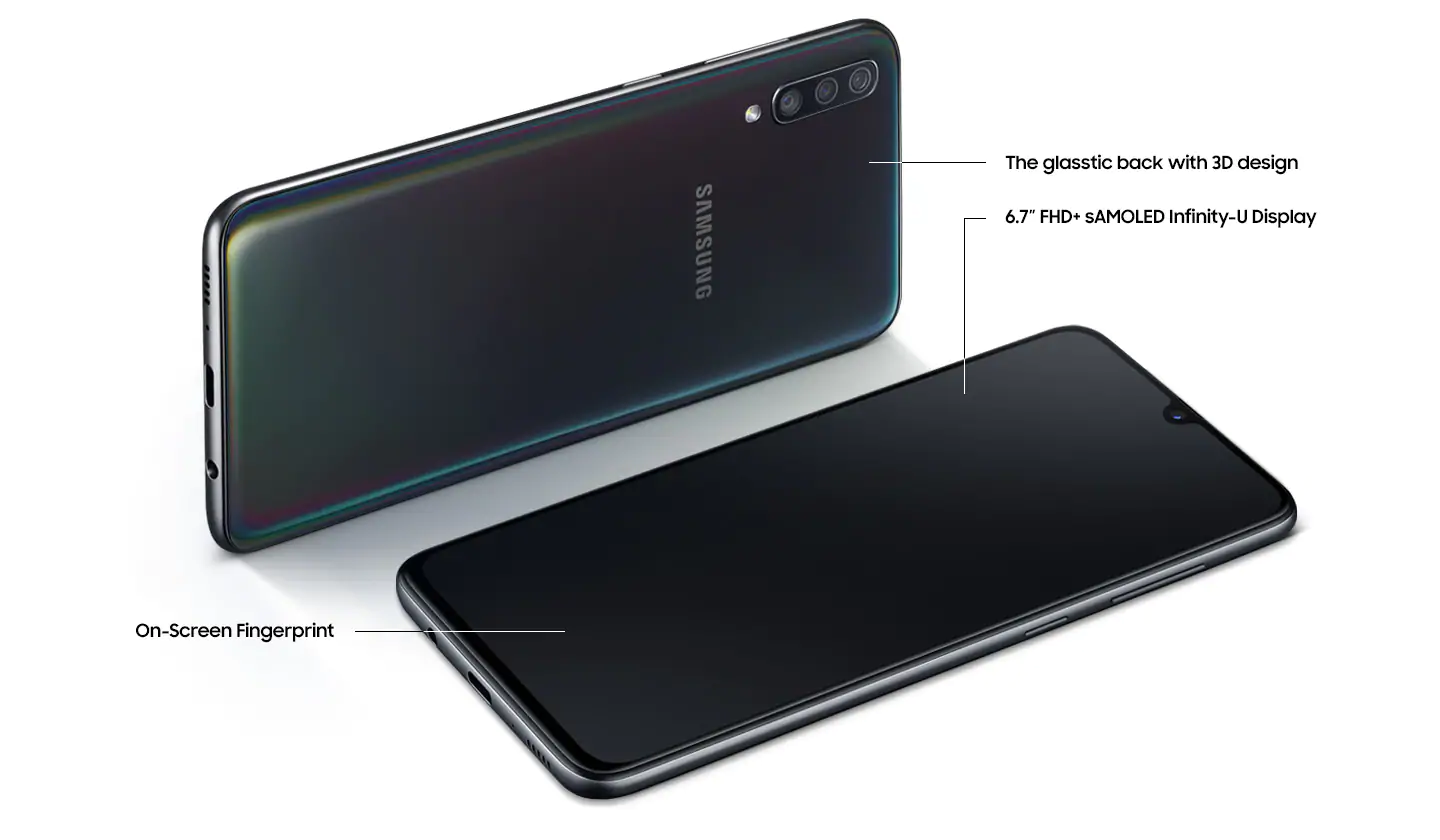 The Galaxy A70 has a minimal look its integrated sensors and the On-Screen Fingerprint. And with a 3D design and glasstic back, it’s easy to hold as you go to work or dinner. Choose from black, white, blue or coral to match with your personality.