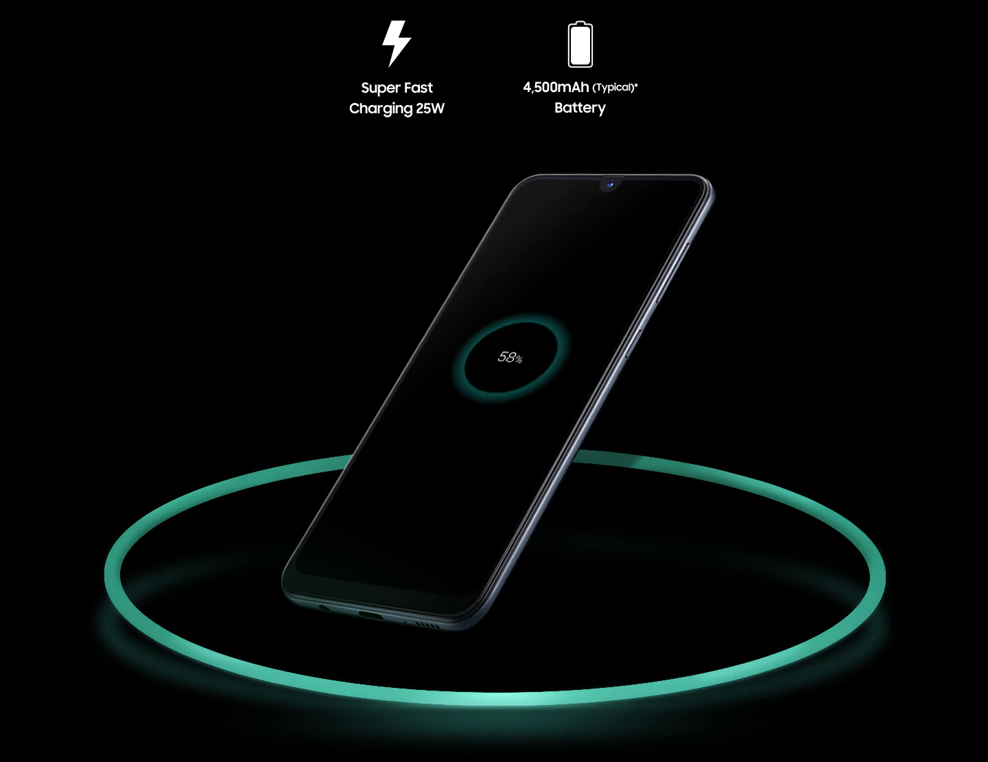 The Galaxy A70 comes equipped with a 4,500mAh (typical) battery that can handle more video, more of the time. The efficient 25W Super Fast Charging technology gets you fully powered and ready to go without being tied down. Now, you can charge less and do more.