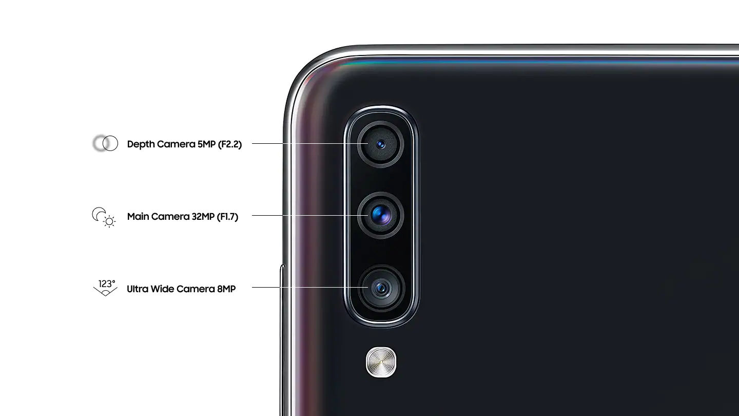 The Galaxy A70’s Triple camera consists of an Ultra Wide Camera with a 123-degree field of vision like the human eye, as well as a 32MP (F1.7) camera for bright, clear photos all day. The third is a 5MP Depth Camera for adjusting the depth of field.
