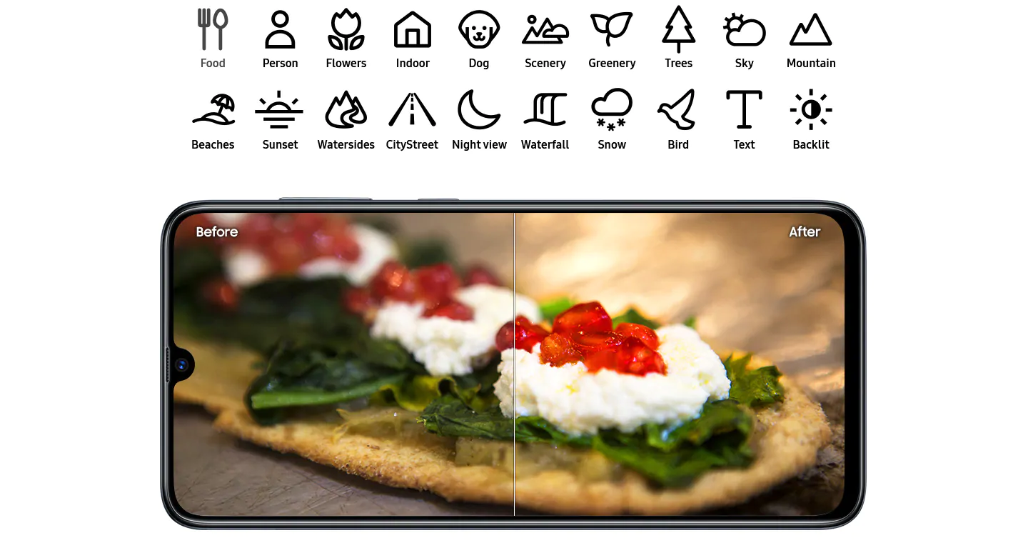 One shot is all you need. Whether taking a photo of food, your pet or the things you love, Scene Optimiser recognizes and enhances it using artificial intelligence. So you get optimum levels of brightness, saturation and more, capturing the moment as you remember it.