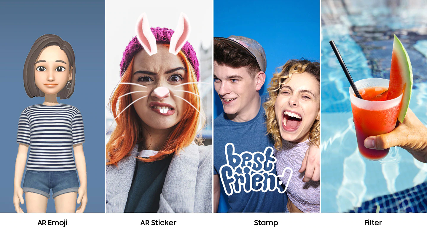 The Galaxy A40 gives you more ways to show off your creative side. Make your own AR emoji to send to friends. Add stickers to every single shot you take. And add fun to every photo with a range of filters and stamps.